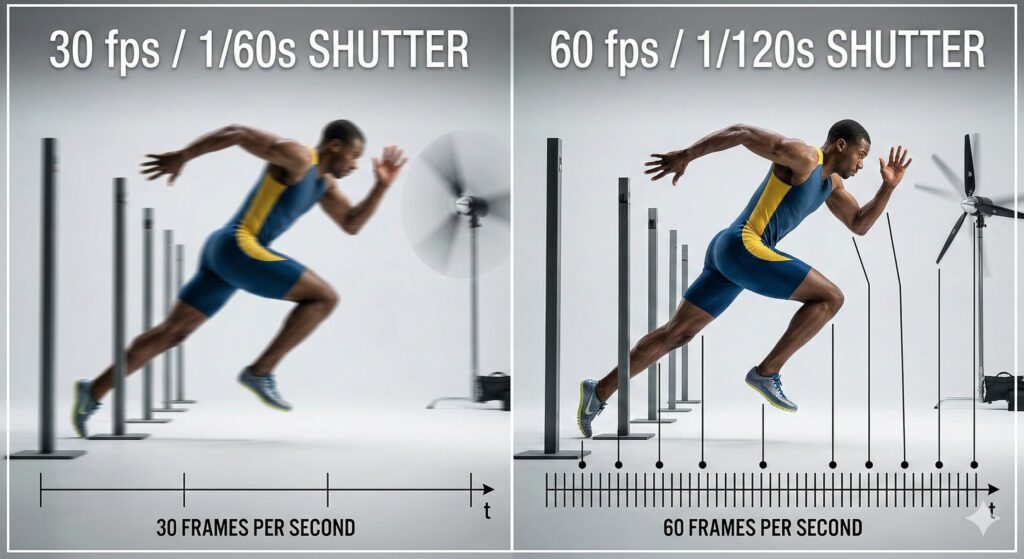 動画制作初心者の方に向けて、フレームレートの30fpsと60fpsで何が変わるのかをプロが解説します。