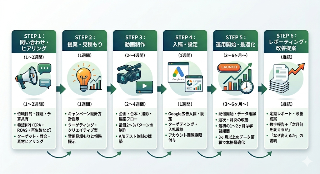 契約前に「担当者のYouTube広告運用歴」「担当件数」「担当者が変わる場合の対応」を確認することを強く推奨します。